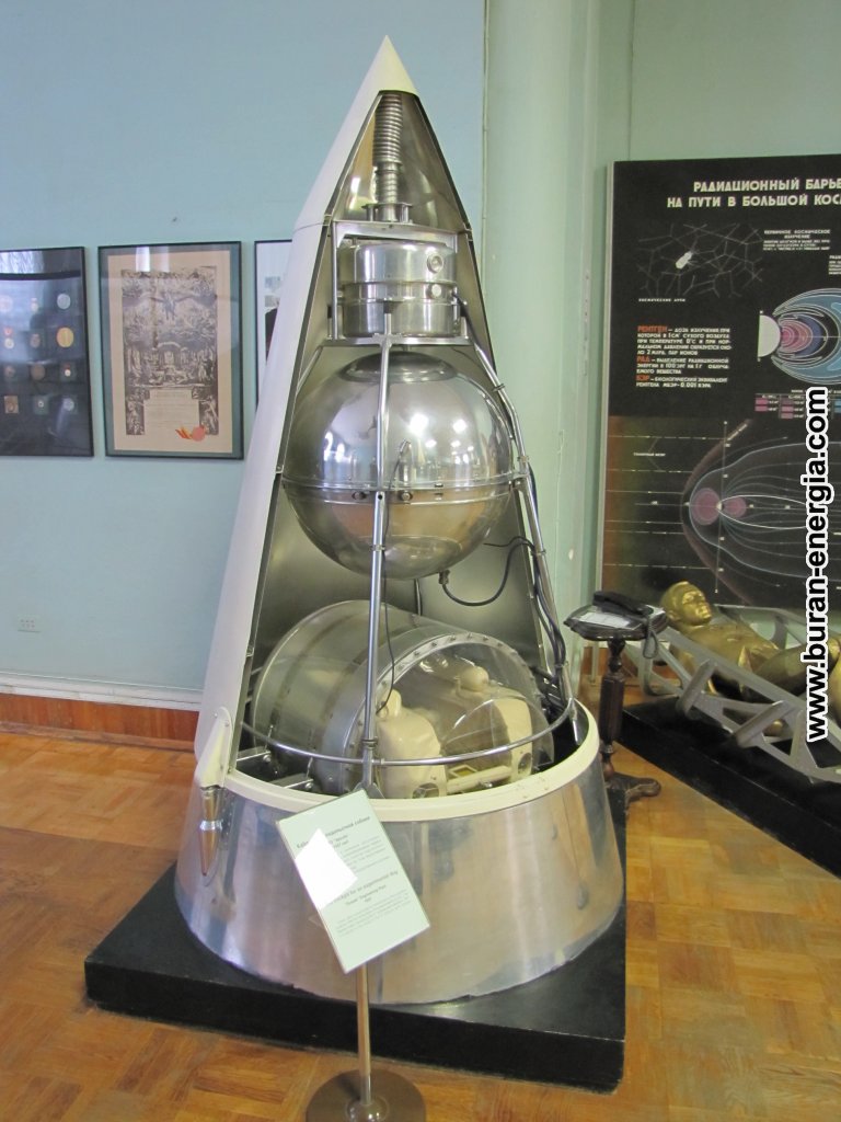 Mock-up of the Vostok spacecraft and helmet of the SK-1 spacesuit: