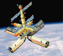 According to other sources the "Kaskad" vessel was elaborated by the company of A.E. Nudelmana supervised by NPO Energia. The putting into orbit of "Kaskad" had to be made by the Progress vessel. Five flights of "Kaskad" were planned for the first stage 1986-88. The factory of the experimental mechanical engineering industries (ЗЭМ) began the manufacturing under the numbers 129, 130, 131, 132, 133. However the project did not reached the flight tests. Vessels are renamed and in 1990 the project is closed.