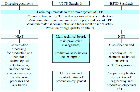 3. Complex unification and standardization of production process elements (constructions, technologies, auxiliaries, equipment, elements of production process) formed the basis for problem solving of reduction of terms, scope and cost of preparation of production.